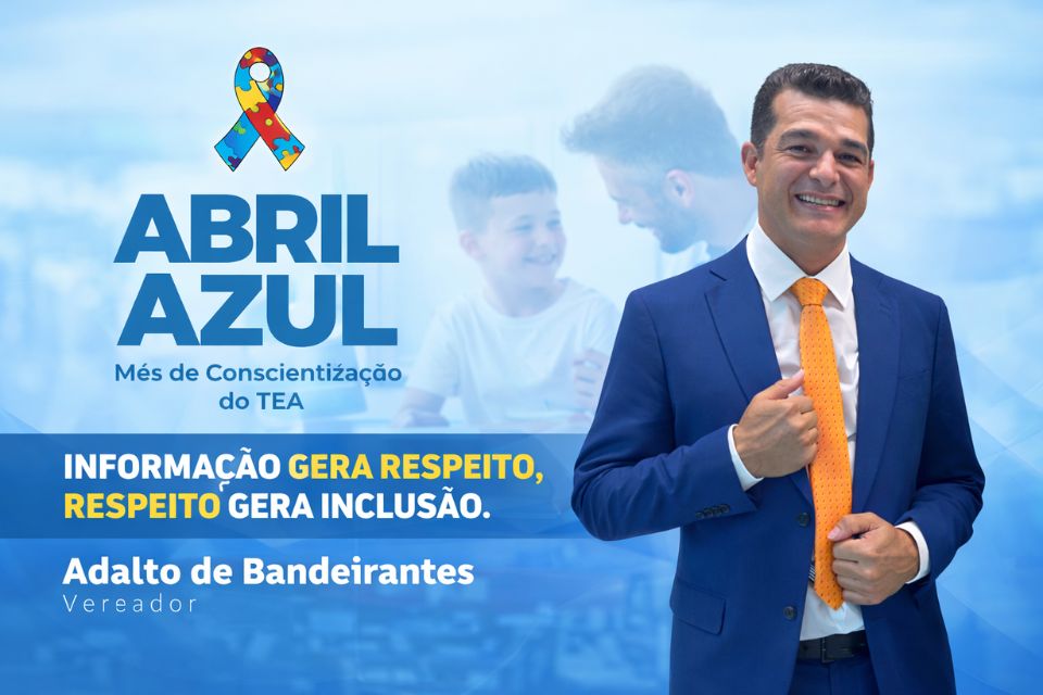 Porto Velho (RO) – O vereador Adalto de Bandeirantes destacou a importância do Abril Azul, período dedicado à conscientização sobre o Transtorno do Espectro Autista (TEA), reforçando seu compromisso com a inclusão e o respeito às pessoas autistas.
