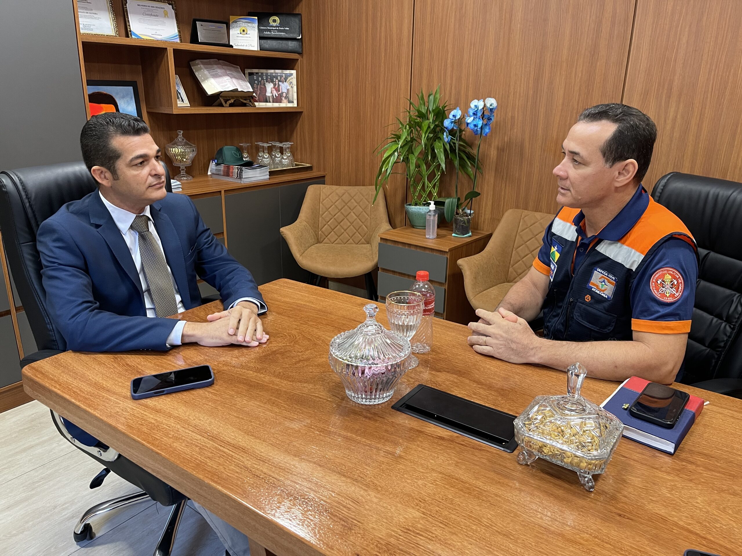Na manhã desta terça-feira (01), o vereador Adalto de Bandeirantes, (Republicanos), recebeu em seu gabinete o Coronel BM Jaime, Coordenador Operacional e Estratégico da Defesa Civil do Estado de Rondônia. O encontro teve como pauta central o combate aos incêndios florestais, um tema urgente que afeta especialmente as zonas rurais dos distritos de Porto Velho.