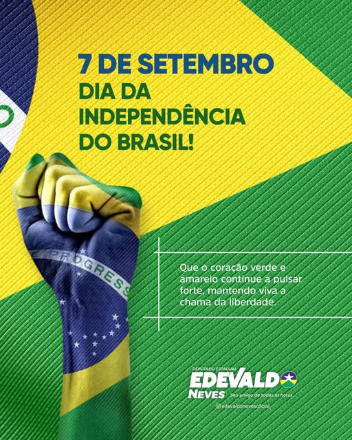 Neste 7 de Setembro, Dia da Independência do Brasil, o deputado estadual Edevaldo Neves destacou a importância da data como símbolo de liberdade, união e amor à Pátria.