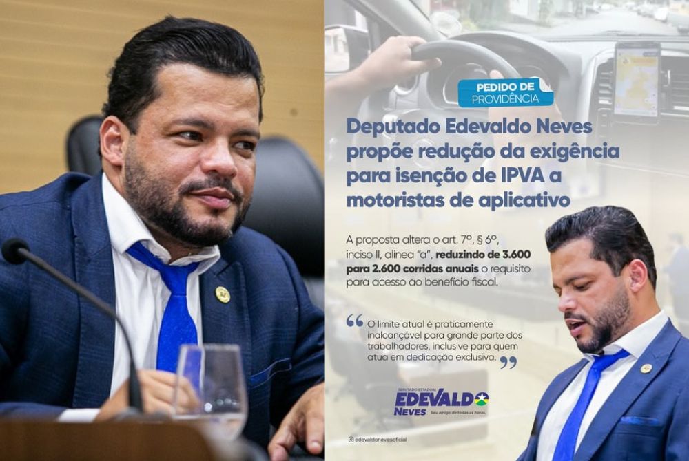 O deputado estadual Edevaldo Neves apresentou uma indicação ao Governo de Rondônia solicitando a redução da meta de corridas exigidas para que motoristas de aplicativo tenham direito à isenção do IPVA.