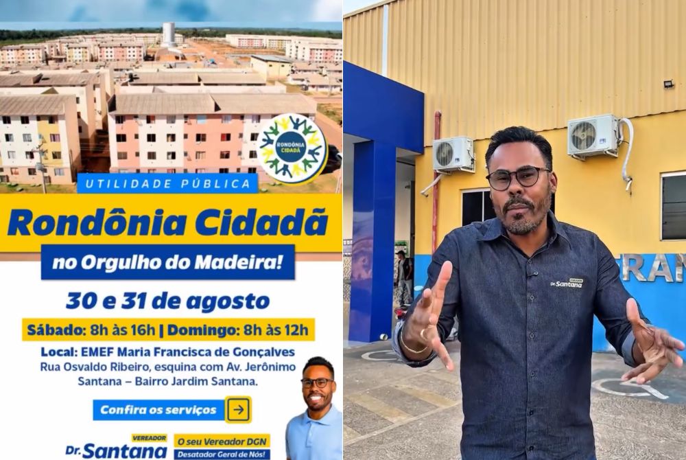O vereador Dr. Santana destaca a chegada do programa Rondônia Cidadã ao Orgulho do Madeira neste fim de semana, levando cidadania, cuidado e dignidade à população.