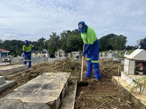 A Prefeitura de Porto Velho, por meio da Secretaria Municipal de Infraestrutura (Seinfra), realiza um mutirão de limpeza e manutenção nos cemitérios municipais, com foco na organização, conservação e respeito aos espaços de uso coletivo.