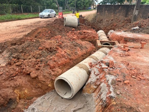 A Prefeitura de Porto Velho, por meio da Secretaria Municipal de Infraestrutura (Seinfra), executa uma obra de drenagem na região do cruzamento das ruas Humaitá e Raimundo Cantuária, com o objetivo de solucionar um problema antigo enfrentado por moradores da área: os constantes alagamentos durante o período chuvoso.