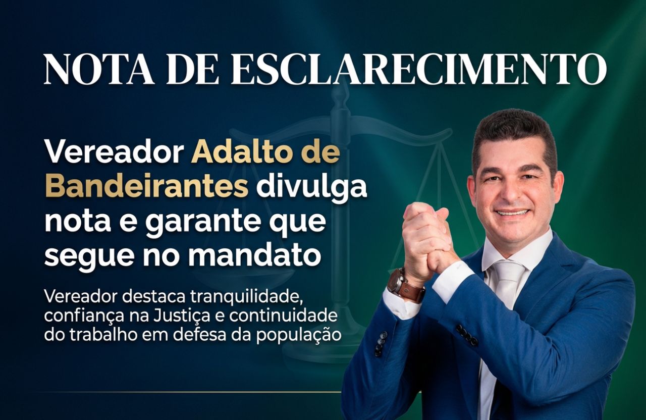 O vereador Adalto de Bandeirantes se manifestou publicamente após a circulação de informações nas redes sociais envolvendo uma decisão da Justiça Eleitoral relacionada a um processo do PSB. Desde a última sexta-feira (13), mensagens e links passaram a sugerir uma possível perda de mandato, o que levou o parlamentar a divulgar uma nota oficial de esclarecimento.