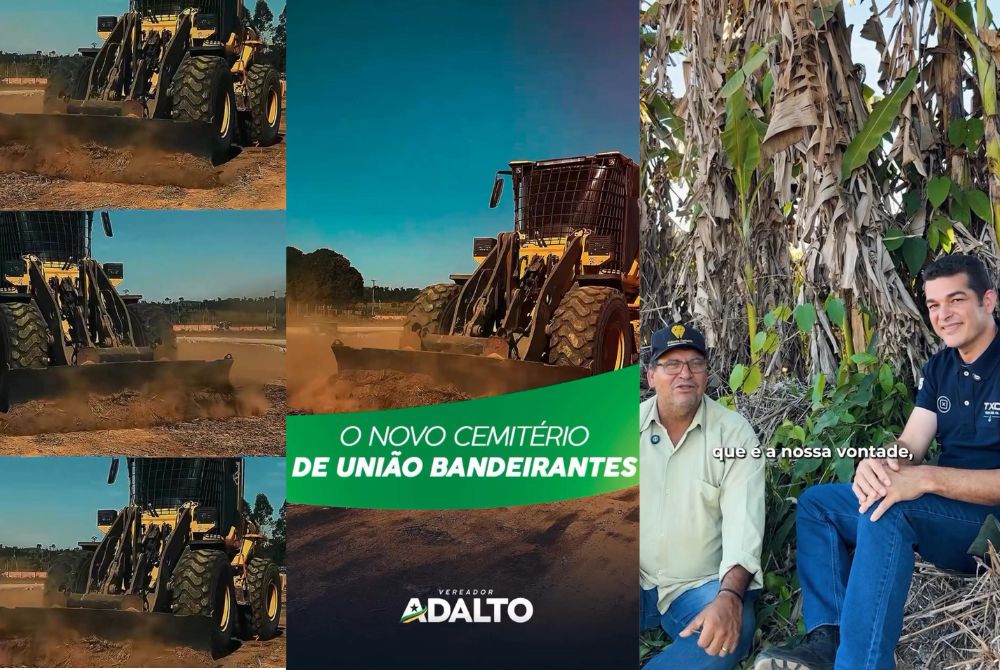 O vereador Adalto de Bandeirantes celebrou o avanço das obras do novo cemitério de União Bandeirantes, que estão ocorrendo em tempo recorde. Ao lado do administrador distrital Valdeci, o parlamentar agradeceu ao prefeito Léo Moraes, ao secretário Prata e a todos os servidores envolvidos nessa importante conquista para a população da região.