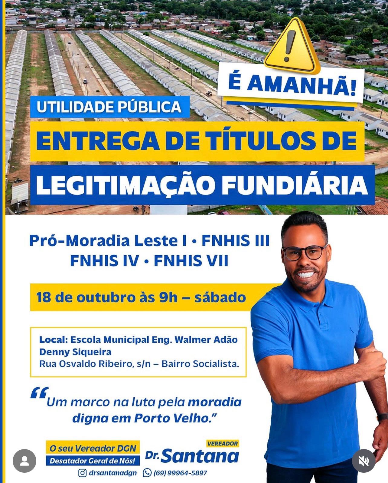 “Conto com a presença de todos nesse momento tão importante! É mais um passo rumo à moradia digna e à tranquilidade para centenas de famílias de Porto Velho”, destacou o vereador Dr. Santana, que tem atuado firmemente na defesa do direito à moradia e na regularização fundiária da capital.