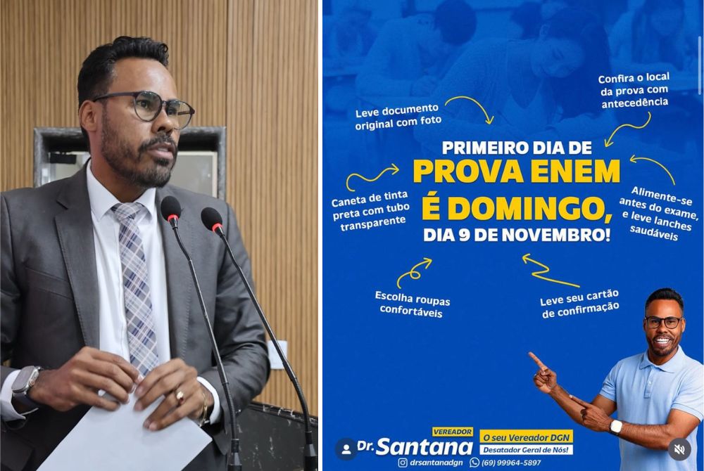 O vereador Dr. Santana enviou uma mensagem de apoio e incentivo aos estudantes que se preparam para o Exame Nacional do Ensino Médio (ENEM), cujo primeiro dia de provas será neste domingo, 9 de novembro.