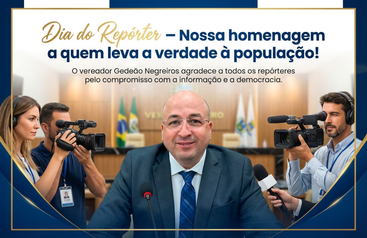 Em celebração ao Dia do Repórter, o vereador Gedeão Negreiros manifestou publicamente seu reconhecimento e gratidão a todos os profissionais da imprensa que atuam com dedicação e responsabilidade na missão de informar a sociedade.